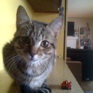 Car door open, toss the cat in, grab keys, start car, roll up window before cat escapes! I turn to look at him perched expectantly on my center console watching my hurried motions. He is bones. Skin and bones and purrs.